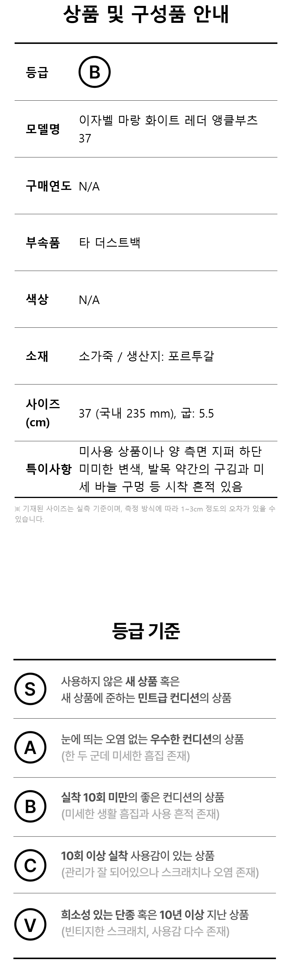 이자벨 마랑 화이트 레더 앵클부츠 37