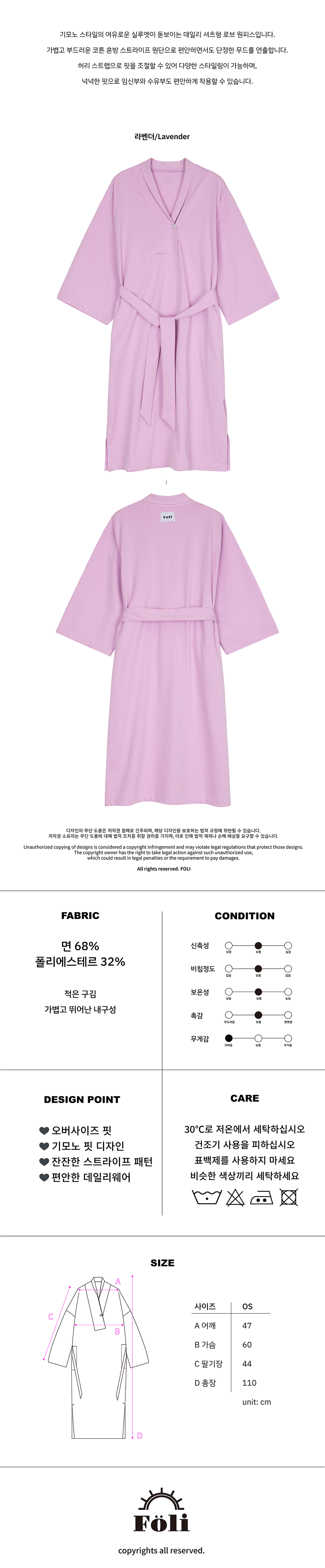 폴리 여 데일리 기모노 셔츠 원피스, 라벤더