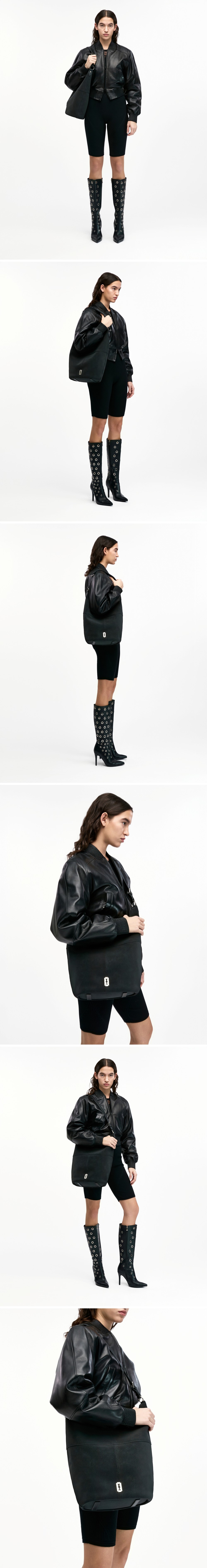 누벅 가죽의 매트한 느낌을 살린 바스켓 형태의 호보백넉넉한 사이즈에 내부에 별도 포켓 구성으로 실용적임스트랩 버클 조절시 다양한 길이감으로 착용 가능(내부) 내부 포켓 2