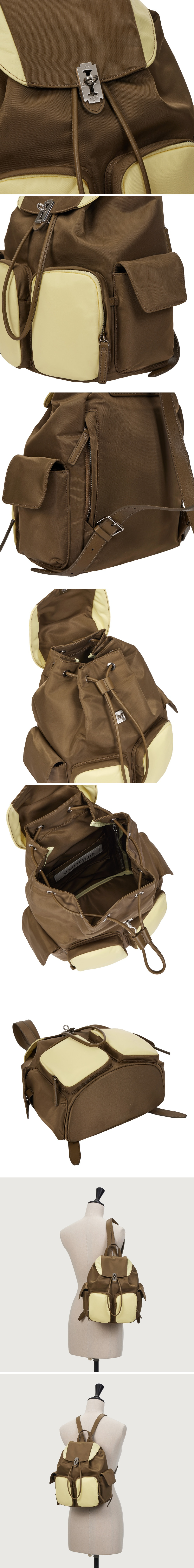 헤이 라인의 캐쥬얼 원단 백팩기존 스타일에 컬러 배색 포인트를 주어 디자인에 포인트4개의 외부 포켓이 있어 분리수납 가능후면에는 지퍼가 있어 물건을 쉽게 넣고 뺼 수 있도록 디자인포켓 옆면에 가죽 고리가 있어 참을 달아 다양한 연출 가능