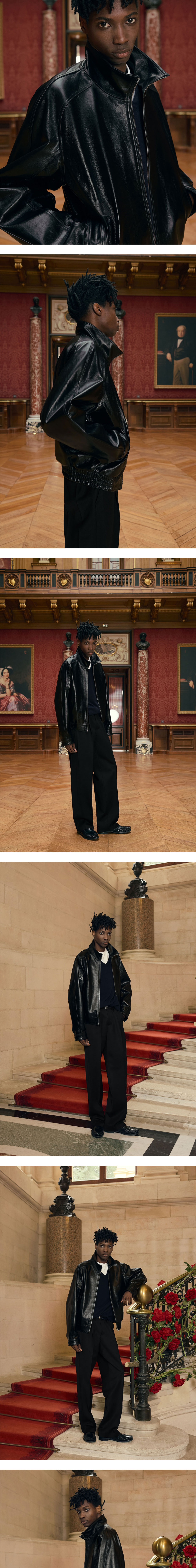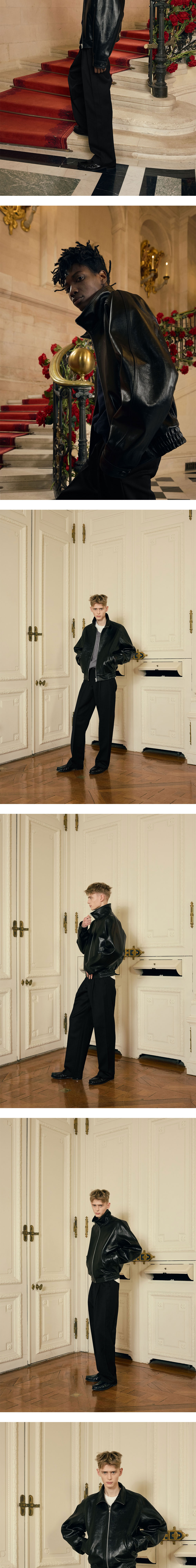 - 루즈 핏 - 오일 우드 가공 레더 - 하이넥 실루엣 - LAMPO 지퍼(Italy) - 로고 각인 소뿔 단추