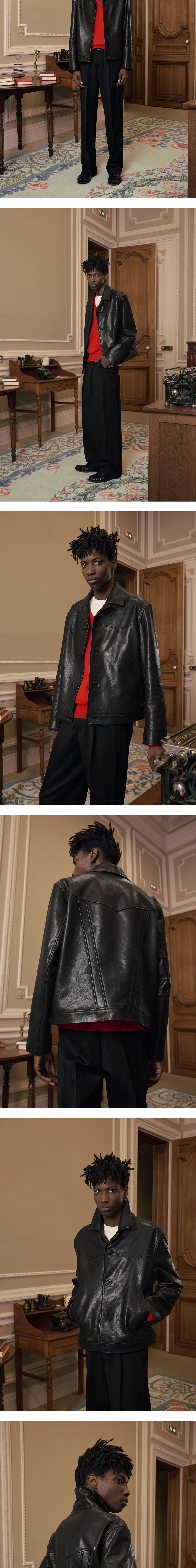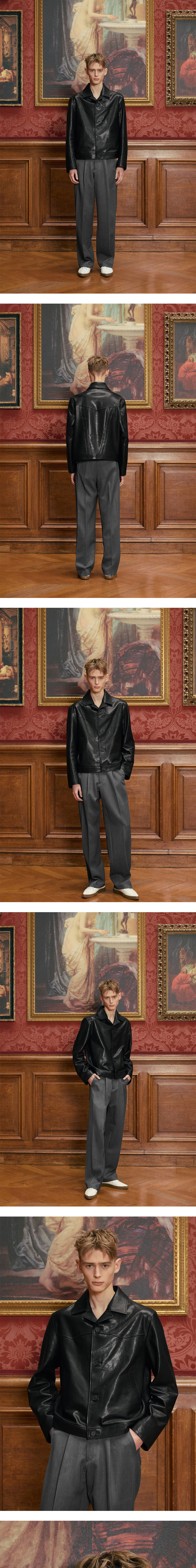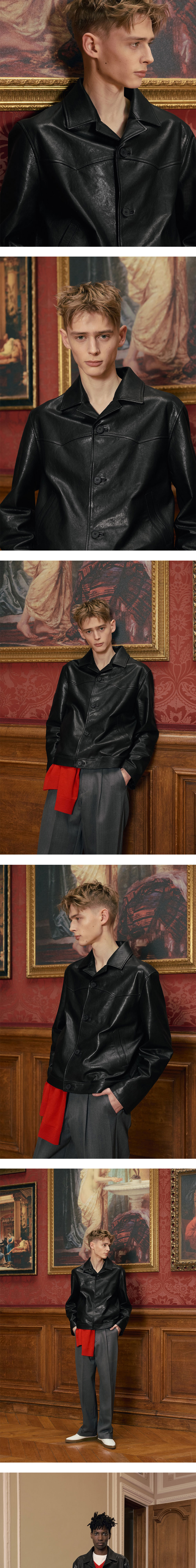 [더블적립]STU Lambskin Button Leather Jacket In Black
