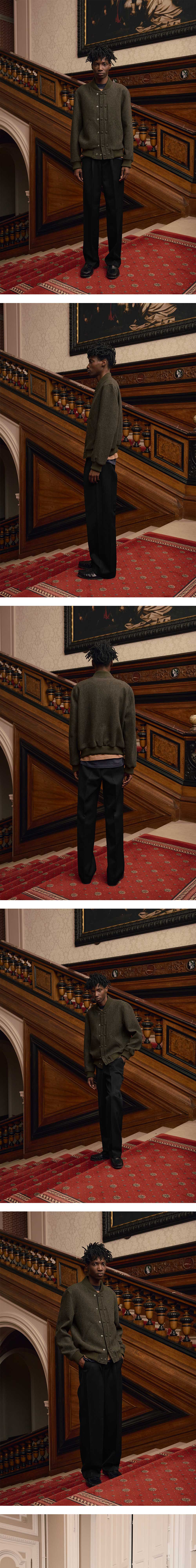 [더블적립]STU Double Placket Varsity Jacket In Khaki