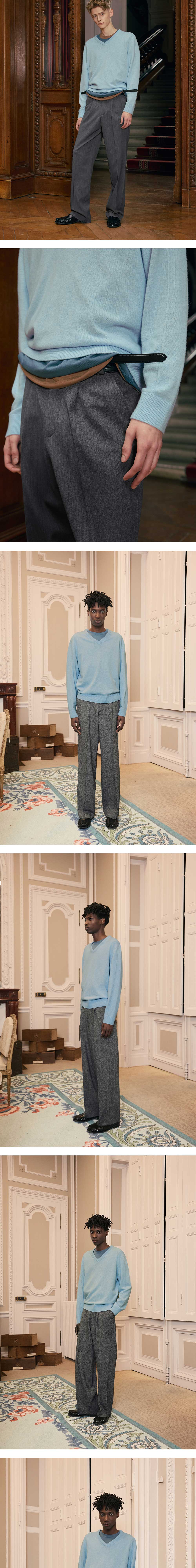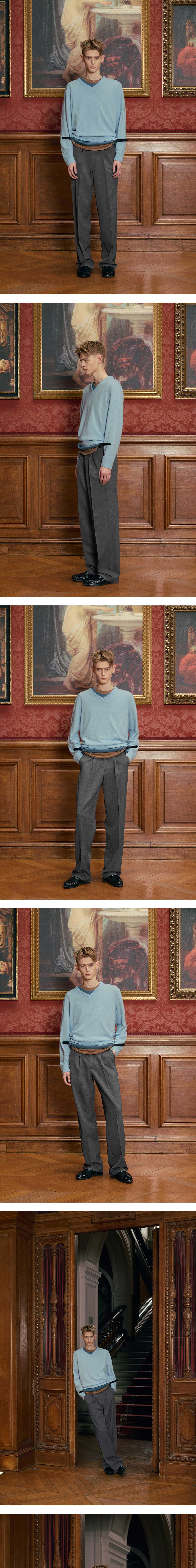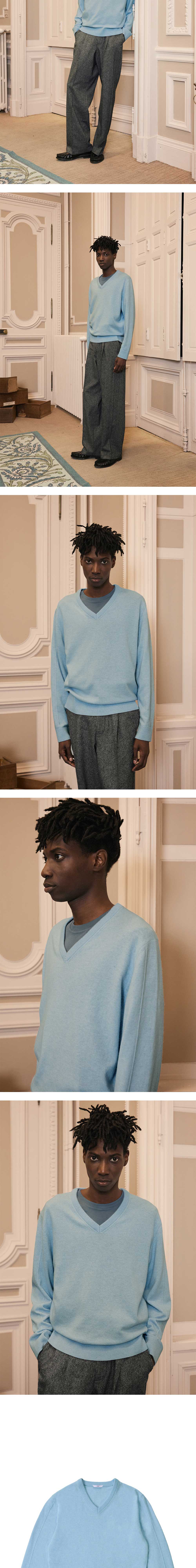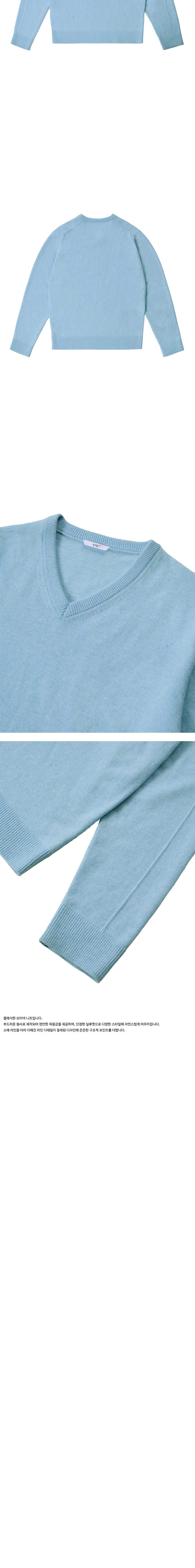 [더블적립]STU Pin Tuck V-Neck Knit In Sky Blue