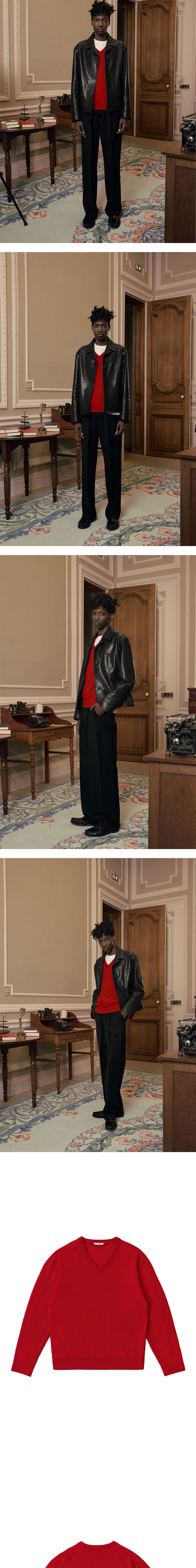 에스티유 핀턱 브이넥 니트 인 레드