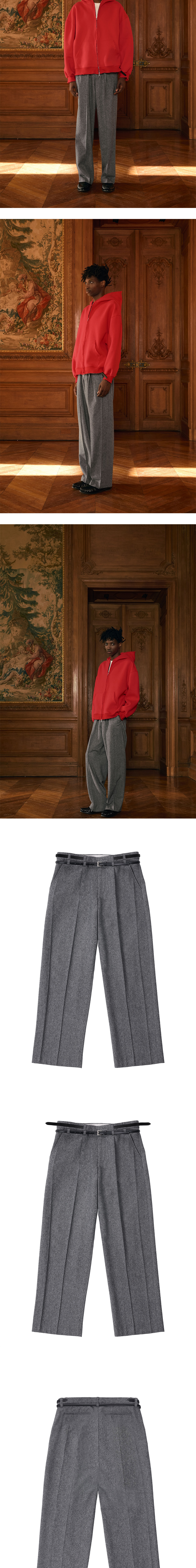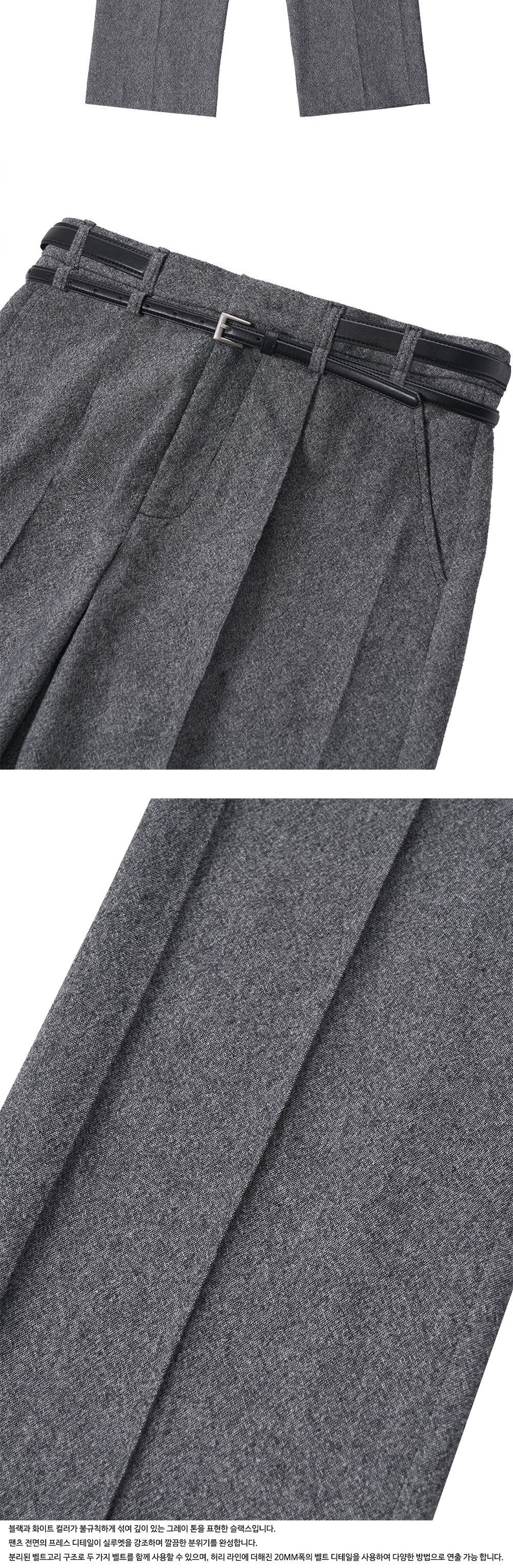 - 루즈 핏 - 20mm 상단 벨트 디테일 - 15mm 블랙 컬러 벨트 증정 (겉감 : 카우 레더 100% 안감 : 폴리우레탄 100%) - 프레스 라인 디테일 - 더블 벨트 고리 디테일 - YKK 지퍼 (Japan) - 내부 로고 벨트 안감 - 밑단 시접 3cm