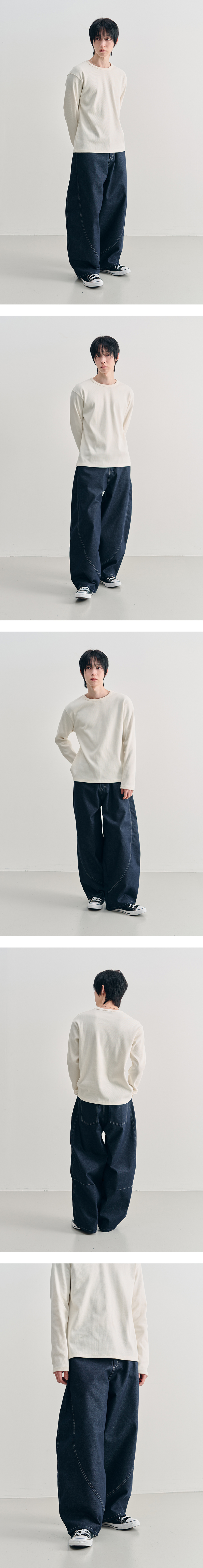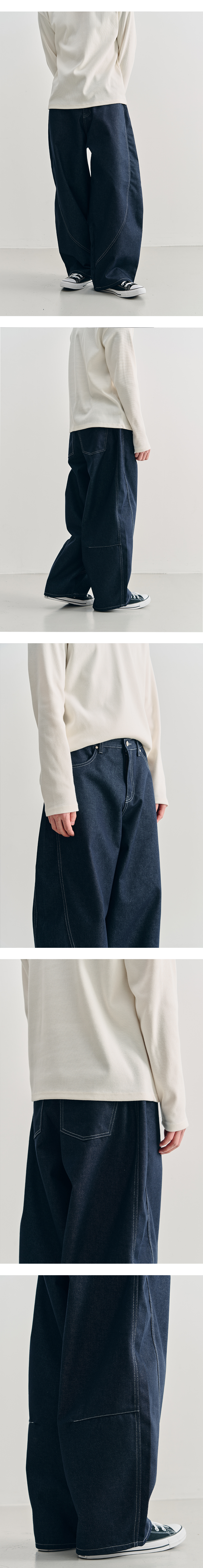 어레이드 커브드 섹션 벌룬 데님 팬츠 인디고