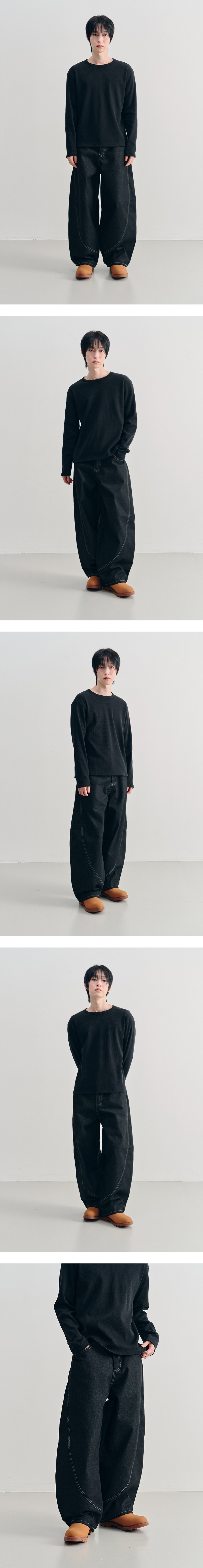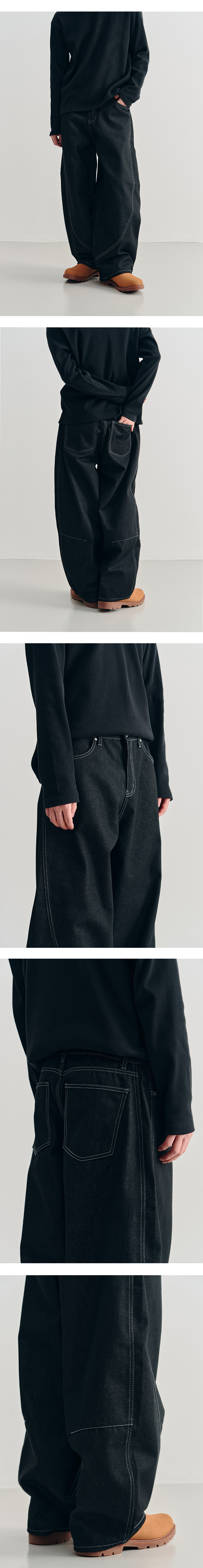 어레이드 커브드 섹션 벌룬 데님 팬츠 블랙