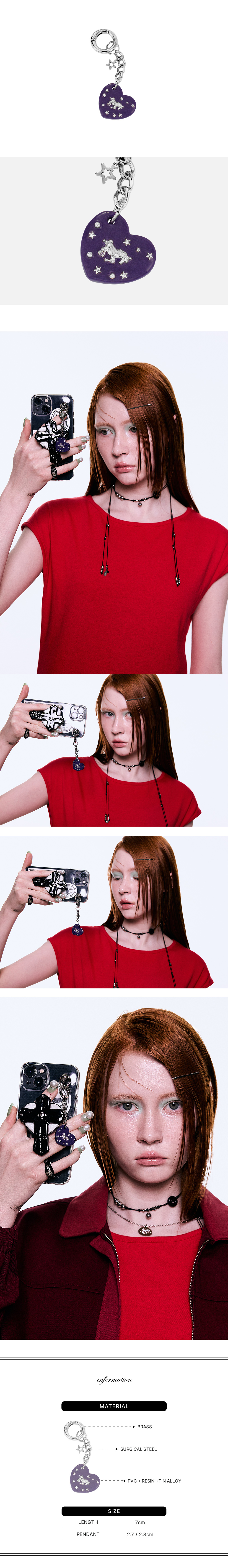 핸드메이드로 제작된 하트 펜던트에 말 모티프를 더한 키링입니다. 핸드폰 고리로도 연출하기 좋은 적당한 무게감으로 제작되었으며, 유니크한 무드를 더해 데일리 아이템에 자연스럽게 포인트를 줄 수 있는 제품입니다. -수작업으로 제작된 펜던트는 제품마다 컬러, 패턴, 형태 및 디테일에 차이가 있을 수 있습니다. -미세한 먼지나 기포는 제작 공정상 발생할 수 있는 자연스러운 현상입니다.