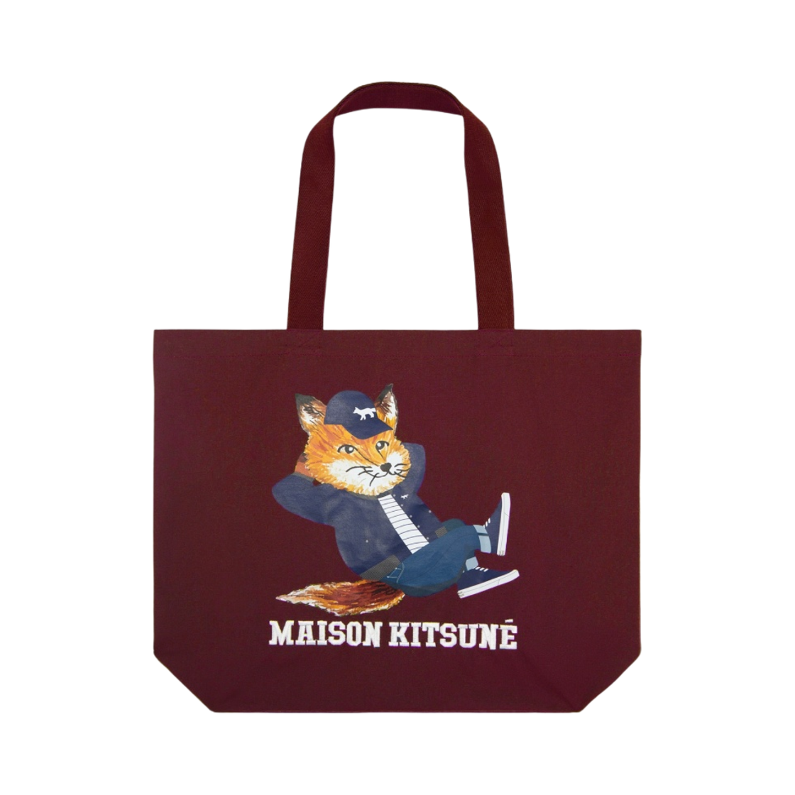 Maison Kitsune Frenchie Dressed Fox Tote Bag Wine Lees