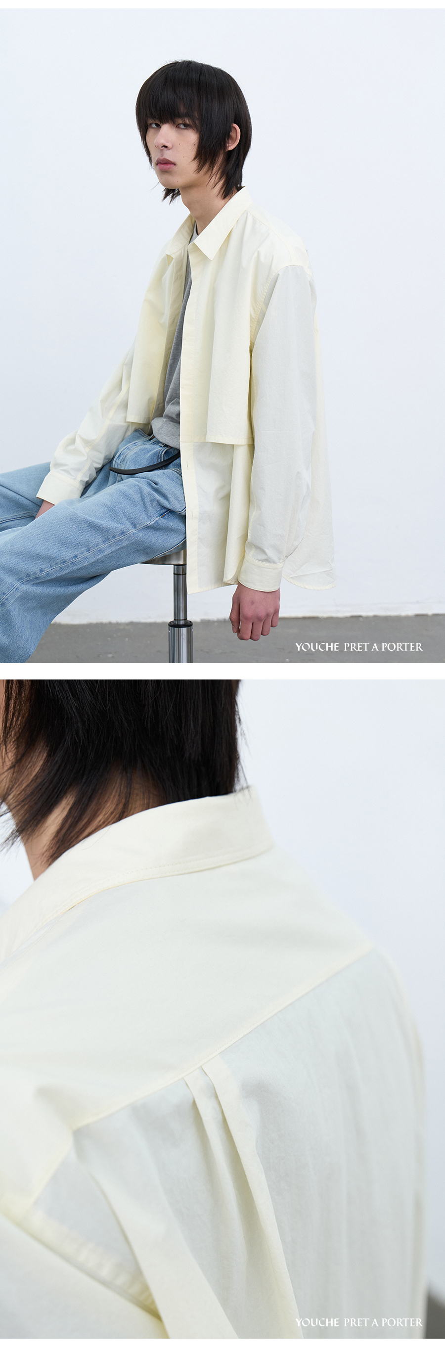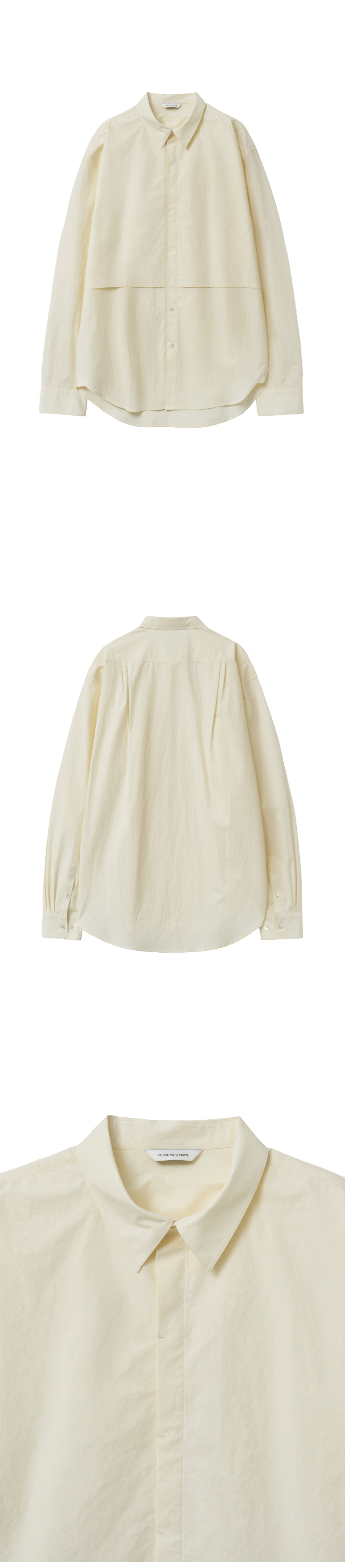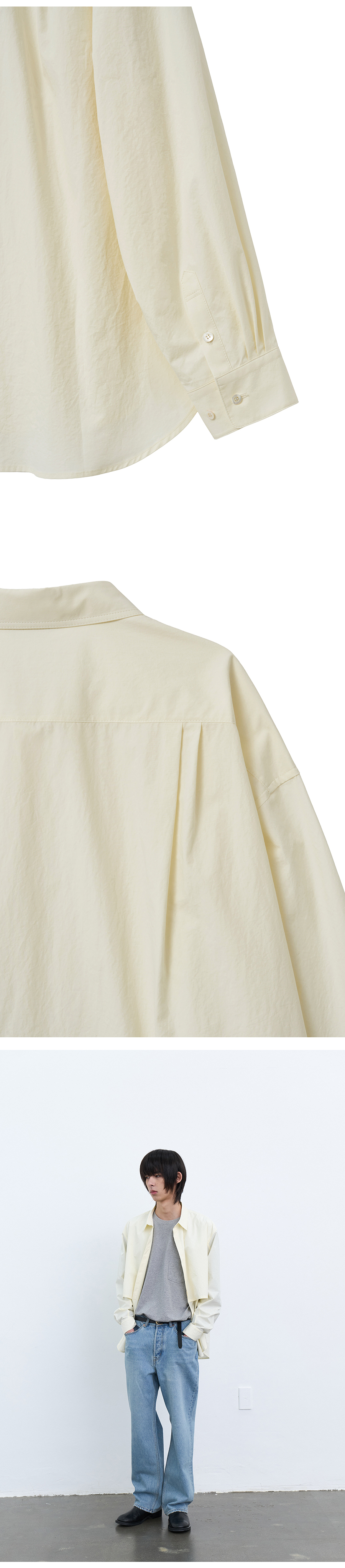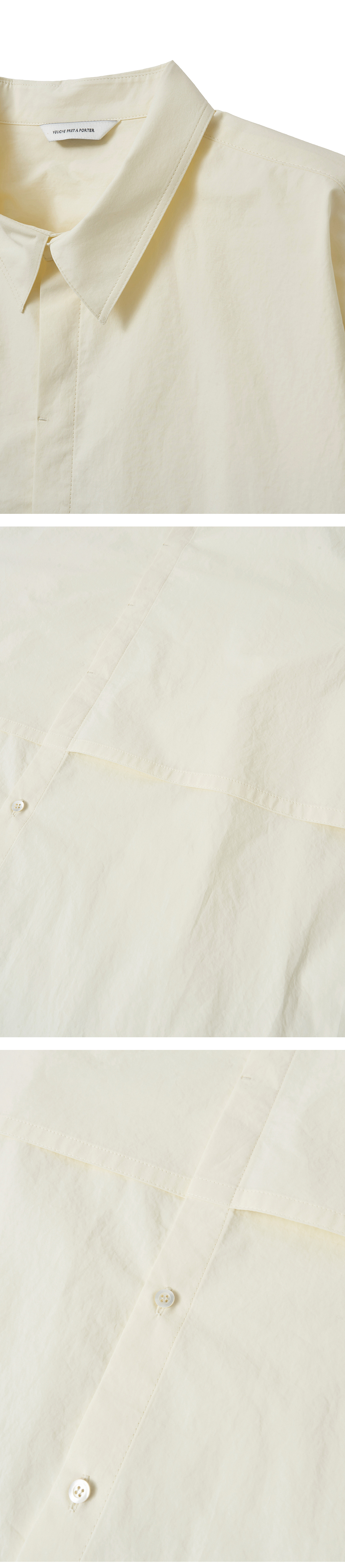 Material Outshell : Cotton 100% Colour : Pale Yellow - 168g/sqm cotton 100% fabric - 10mm MOP(mother of pearl) buttons - Hidden placket front - Horizontal division line - Back yoke double tucks (each side) - Cuffs triple tucks - Relaxed fit