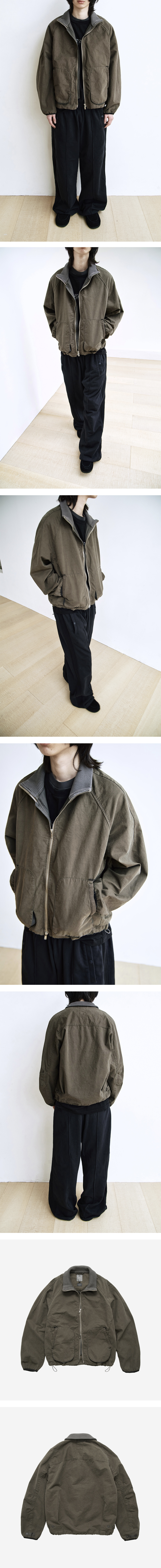 rib jacket - 리브드 카라가 적용된 빈티지한 색감의 자켓 - 하이넥 및 카라 형태로 연출 가능한 넥 밸런스 - 래글런 소매 패턴으로 자연스럽게 떨어지는 실루엣 - 실키한 터치감으로 포근한 착용감 구현 - YKK 투웨이 지퍼 사양 - 전면부 큰 입체 포켓 구성, 별주 제작된 니트 및 스웨이드 테이프 디테일 적용 - 전면부 플라켓 및 안단에 은은한 배색의 립스탑 원단 적용 - 소매 끝 스웨이드 테이프 마감 및 실루엣 조절 가능한 스냅 적용 - 밑단 실루엣 조절 가능한 스트링 및 사이드 어드저스트 적용 - 내부 수납 가능한 포켓 1개 구성 *모델: 178cm / 마른 체형, 3사이즈 착용
