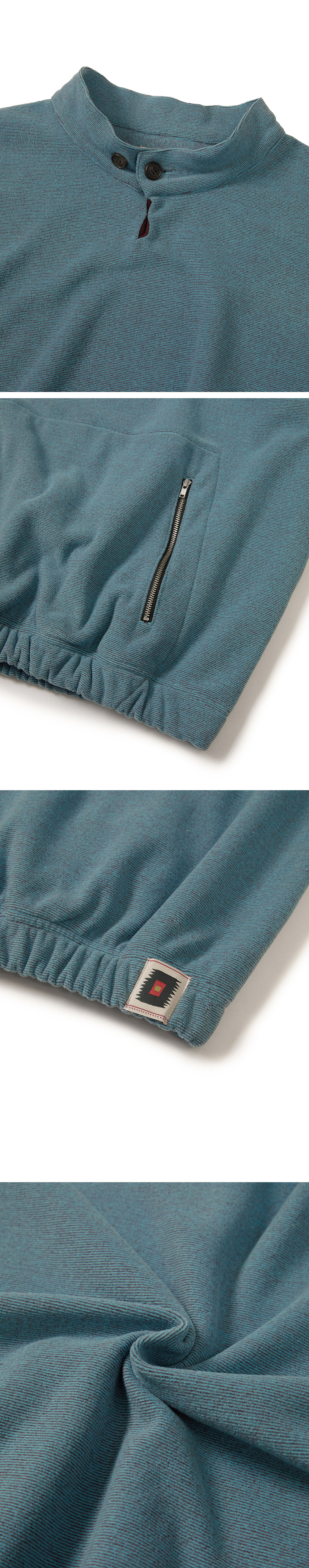 Product Info. - 빈티지한 컬러감이 돋보이는 플리스 풀오버 - 가벼운 두께감으로 간절기 착용에 적합한 아이템 - 정제된 릴렉스드 핏으로 균형감 있는 실루엣 형성 - 넥 여밈부 컬러 블럭 디테일 - 프런트 YKK 지퍼 포켓 사양 - 정교한 패턴이 각인된 소뿔 버튼 사양 - 빈티지 무드의 시즌 시그니처 직조 라벨 포인트