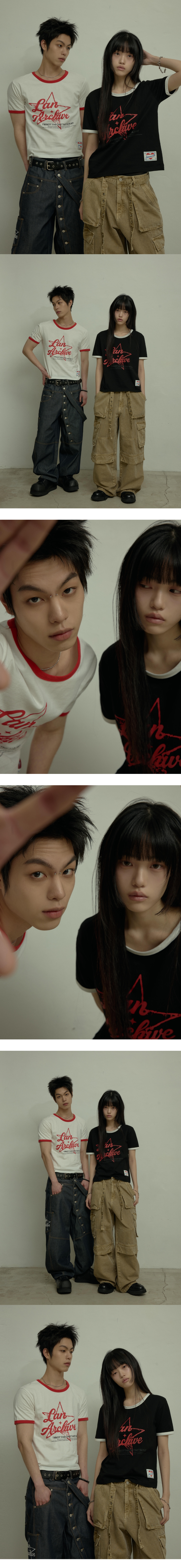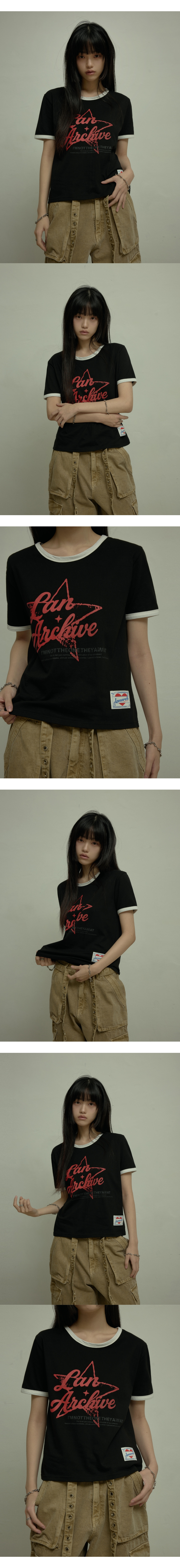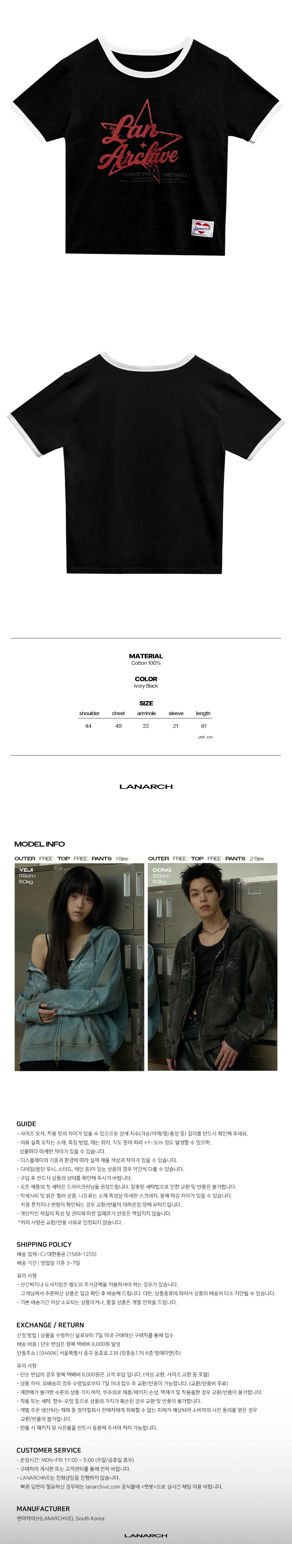 랜 아카이브 0094 랜 스타 로고 링거 티셔츠 - 블랙