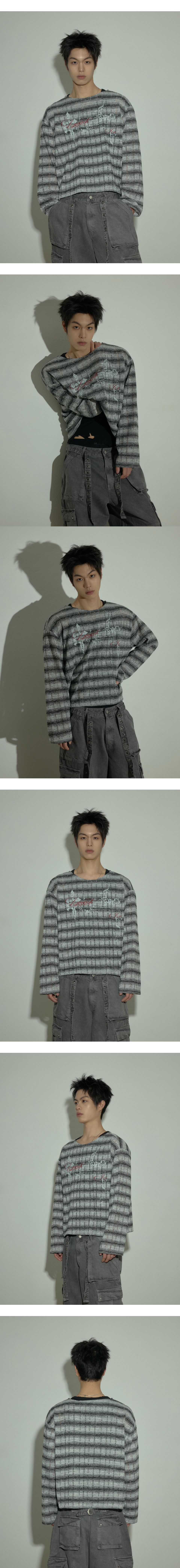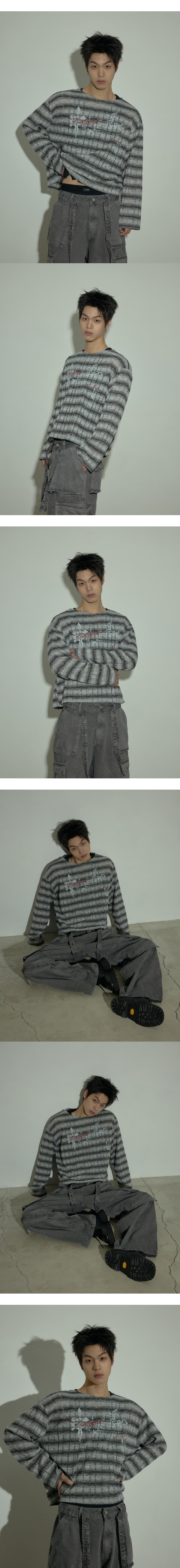 랜 아카이브 0098 그런지 그래픽 시스루 롱슬리브 - 그레이