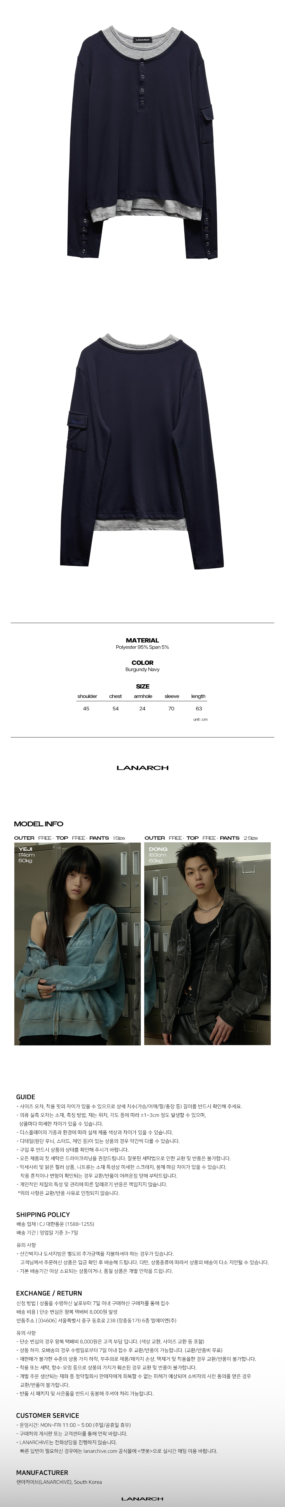 랜 아카이브 0105 레이어드 헨리넥 롱슬리브 - 네이비
