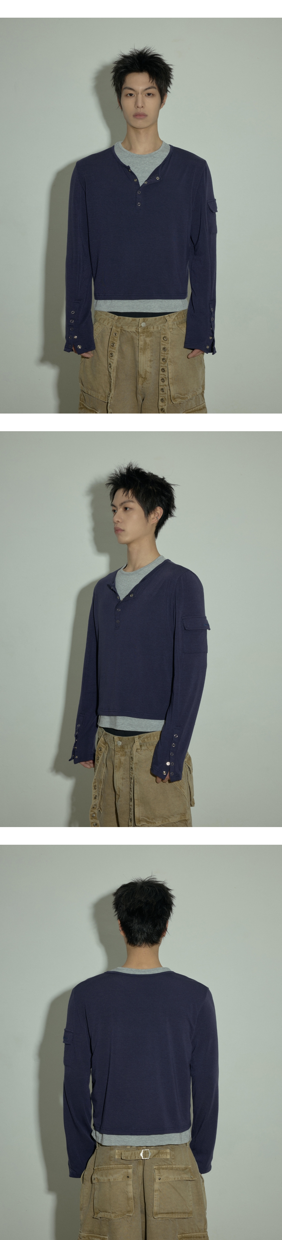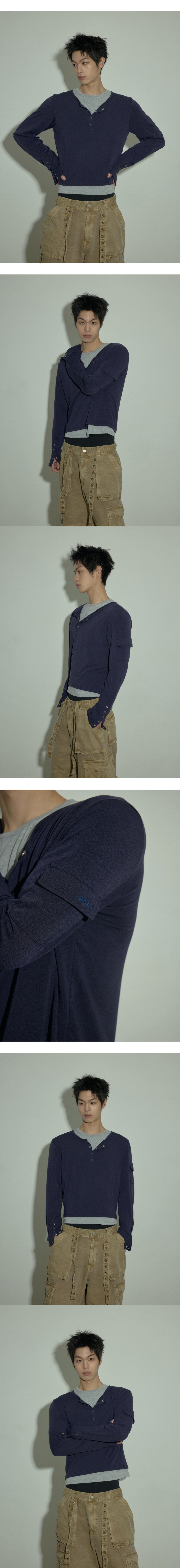 LAN ARCHIVE 0105 Layered Henley Neck Long Sleeve - Navy