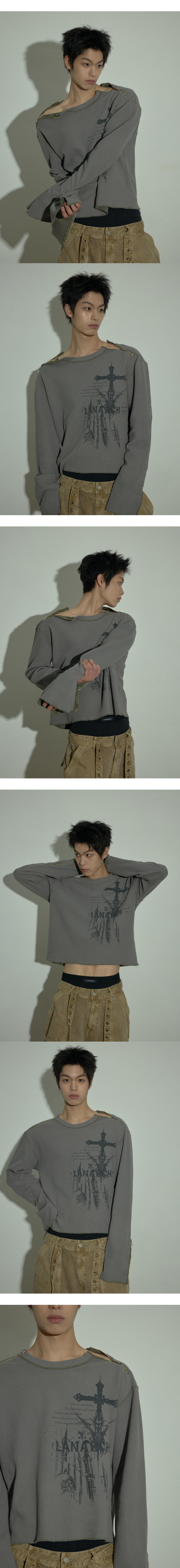 LAN ARCHIVE 0106 Gothic Shoulder Zip Waffle Long Sleeve - Khaki