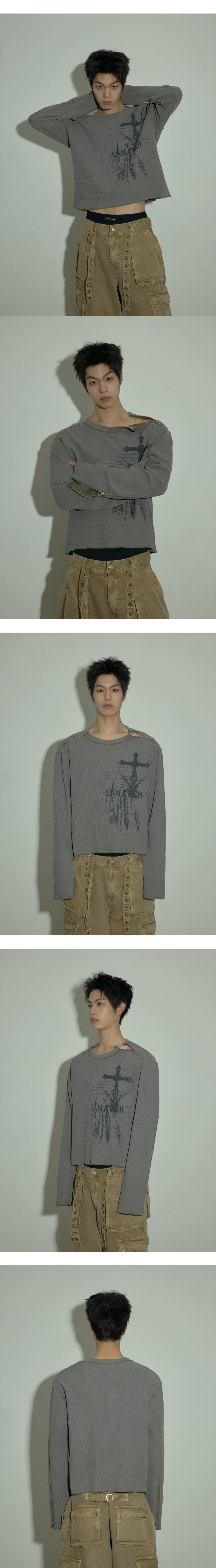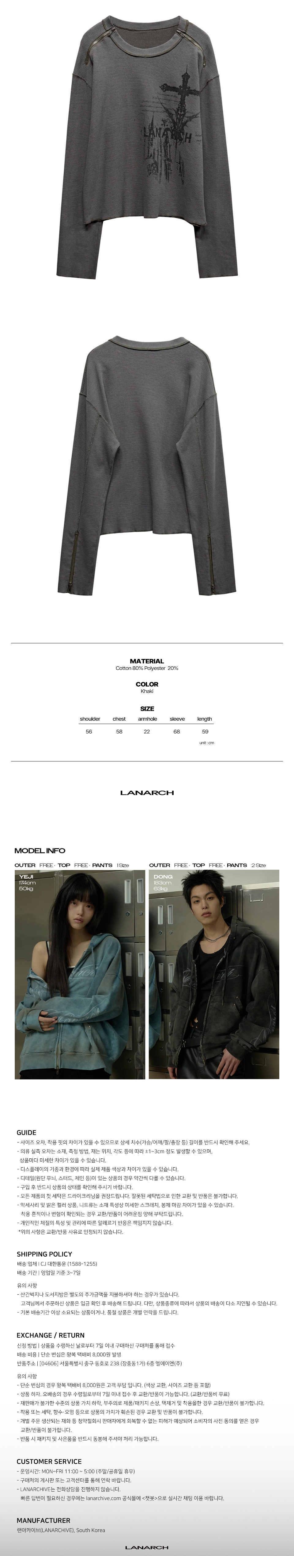 랜 아카이브 0106 고딕 숄더 지퍼 와플 롱슬리브 - 카키