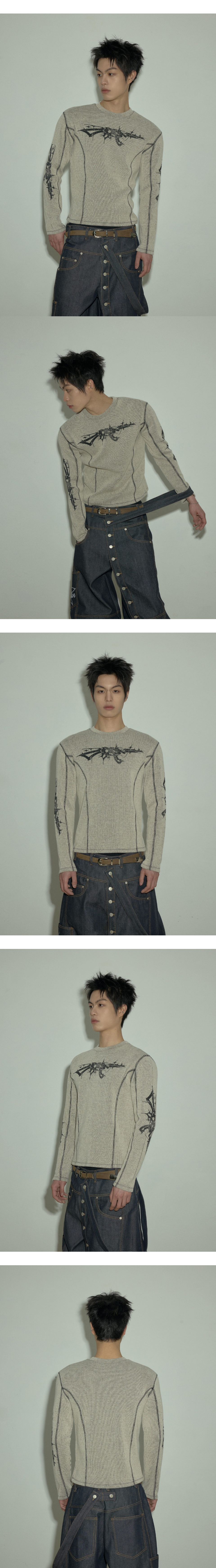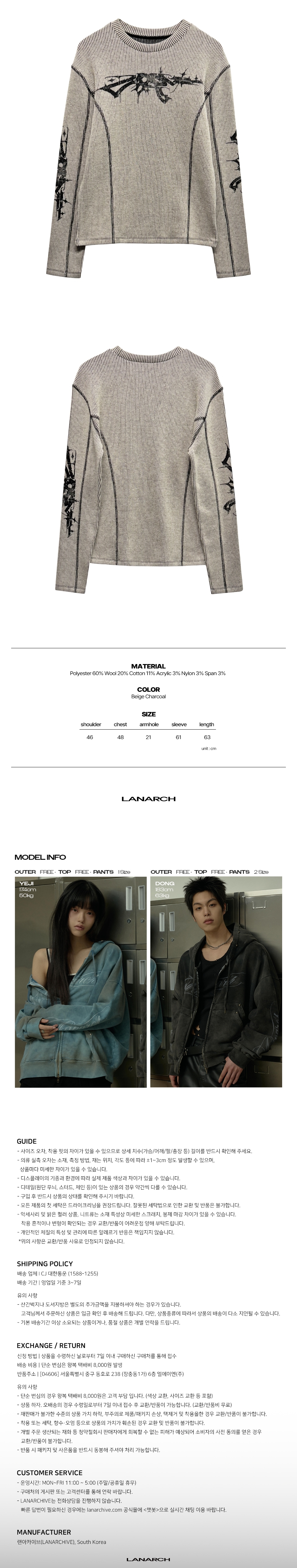 랜 아카이브 0107 건 그래픽 리브드 슬림 롱슬리브 - 베이지