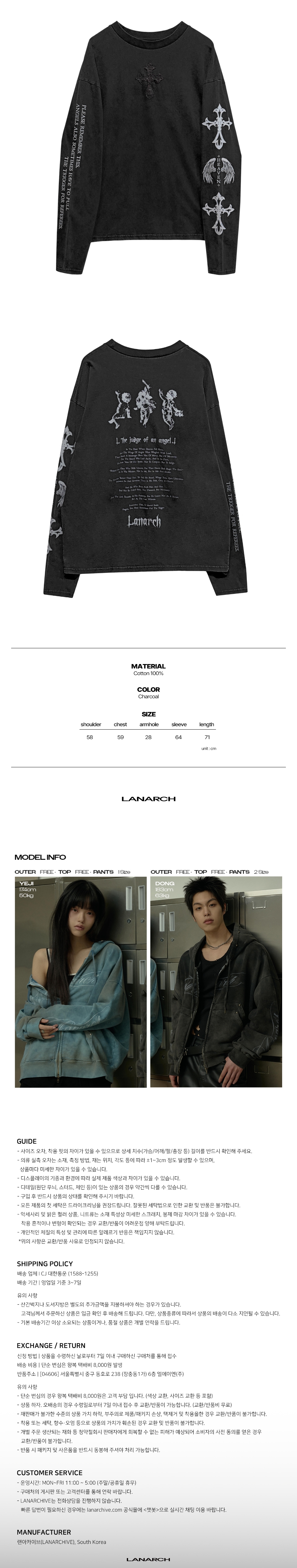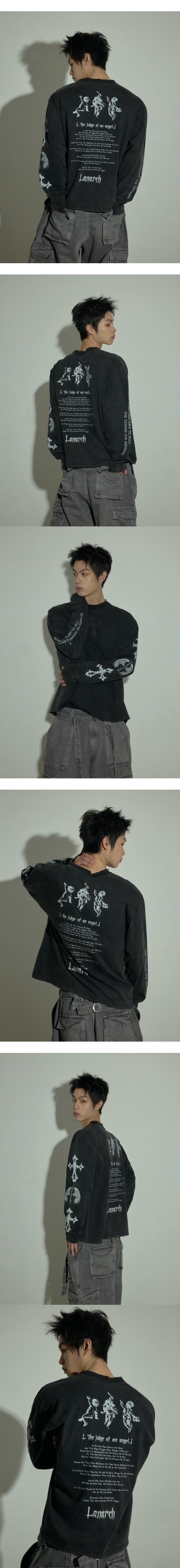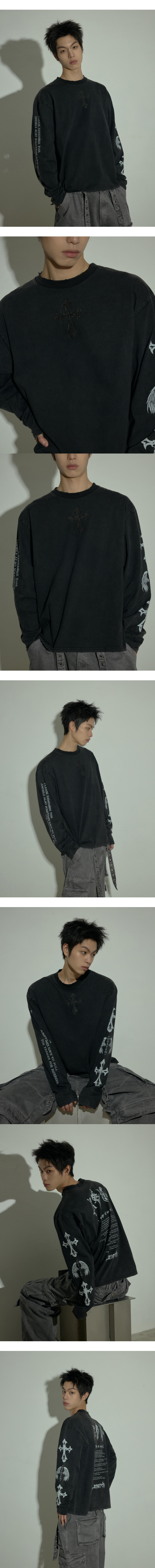 랜 아카이브 0110 엔젤 크로스 워시드 롱슬리브 - 차콜