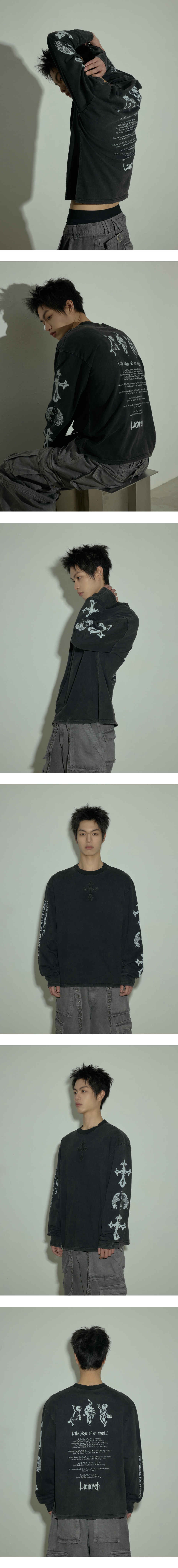 LAN ARCHIVE 0110 Angel Cross Washed Long Sleeve - Charcoal