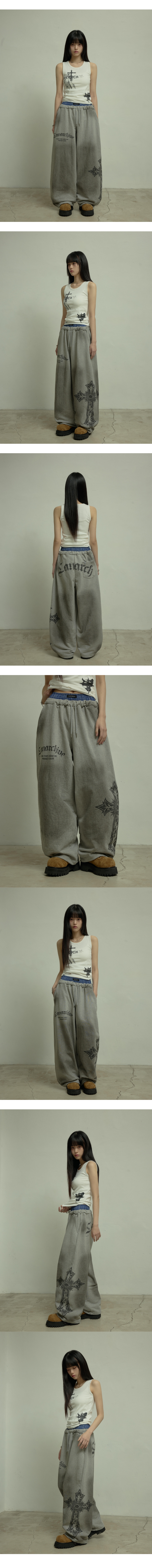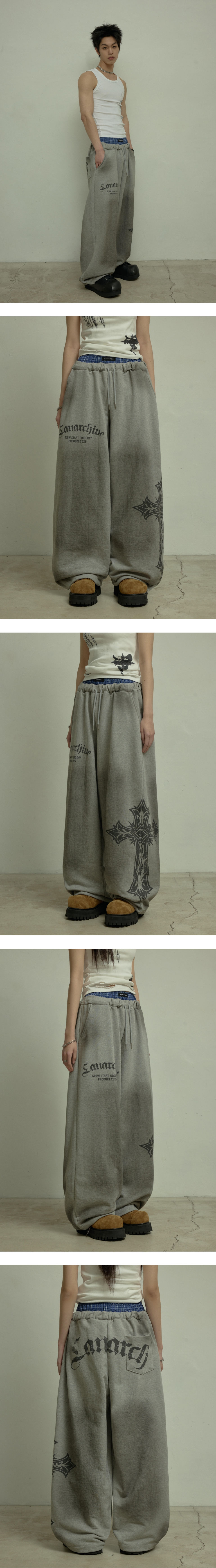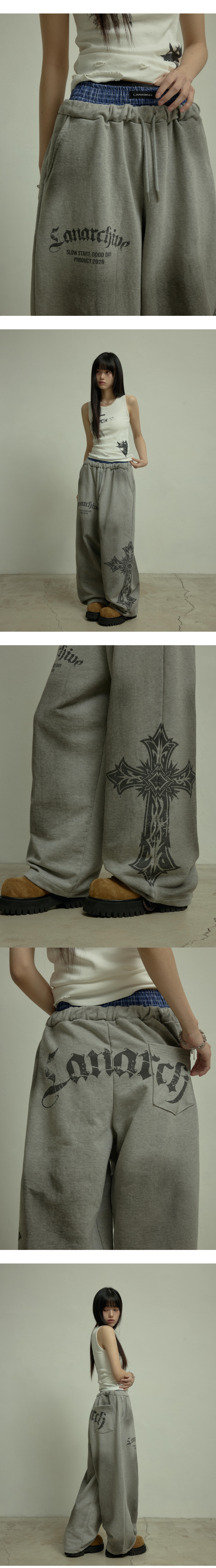 LAN ARCHIVE 0123 Sagging Band Wide Sweat Pants - Gray