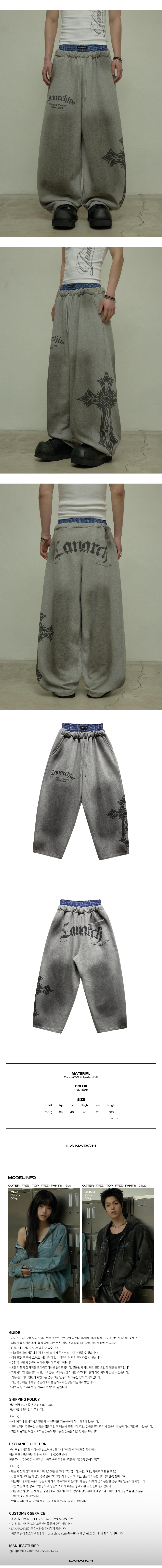 랜 아카이브 0123 새깅 밴드 와이드 스웨트 팬츠 - 그레이