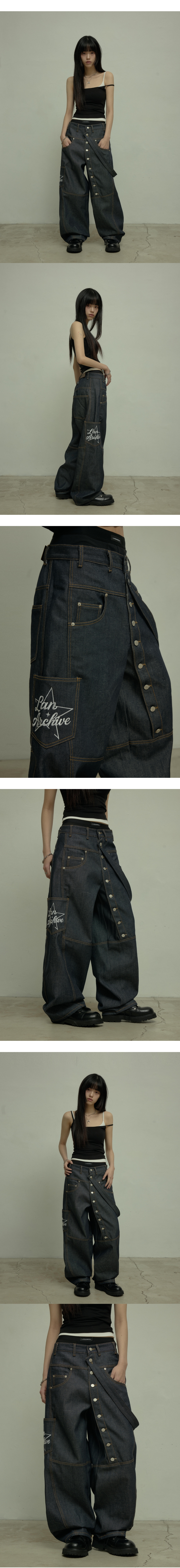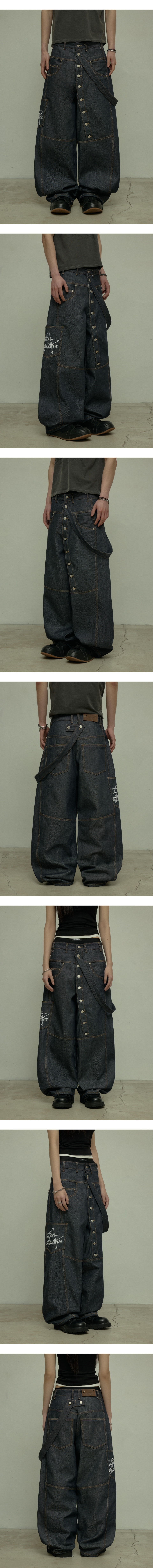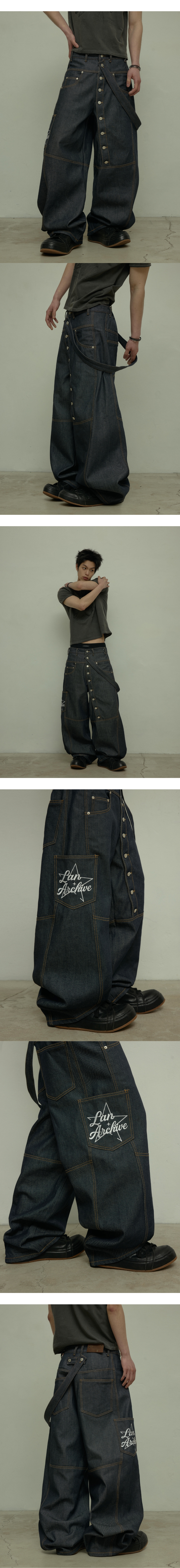 LAN ARCHIVE 0127 Diagonal Button Belt Raw Denim Carpenter Pants – Indigo