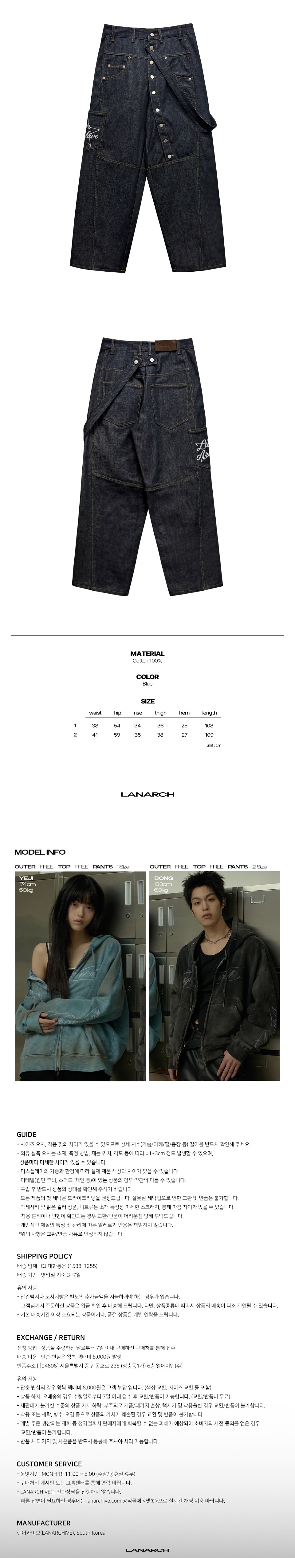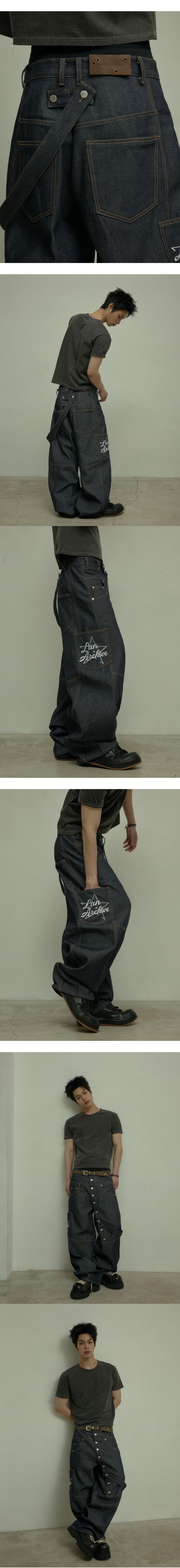 랜 아카이브 0127 사선 버튼 벨트 생지 카펜터 팬츠 - 인디고