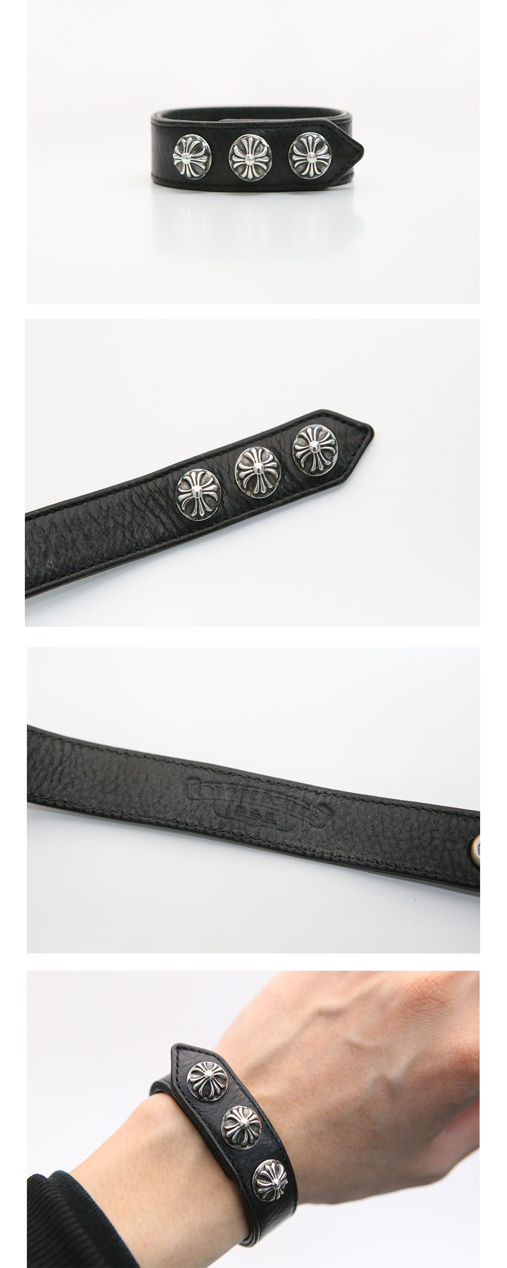 한스룸 크롬하츠 크로스볼 3 버튼 2 스냅 가죽 팔찌