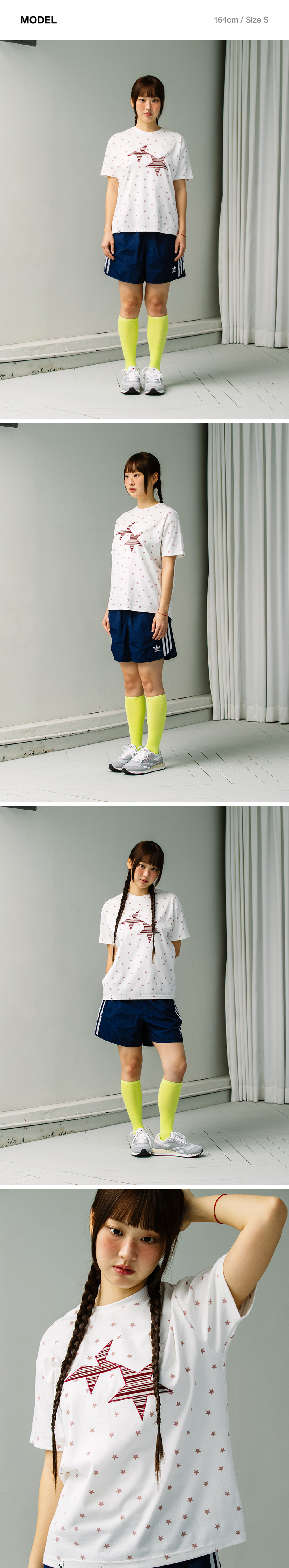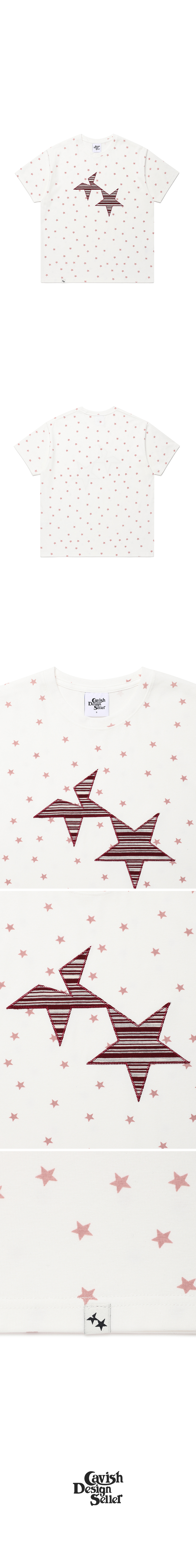 카비시 트윈 스타 스트라이프 아플리케 숏슬리브 티셔츠 화이트