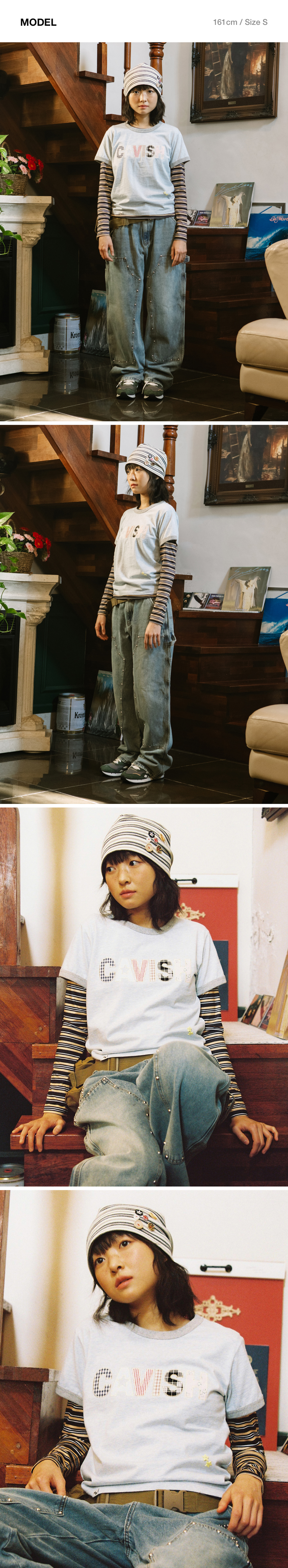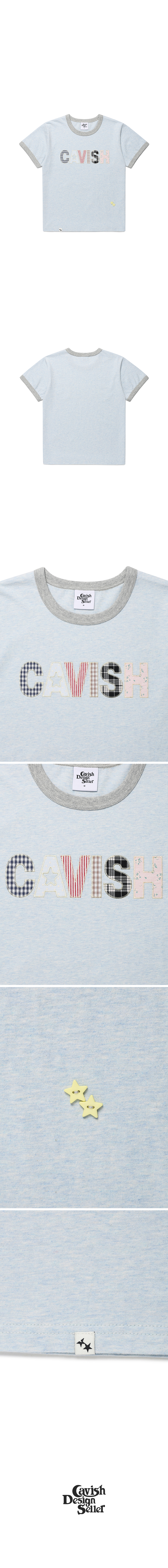 카비시 아플리케 링거 숏슬리브 티셔츠 블루