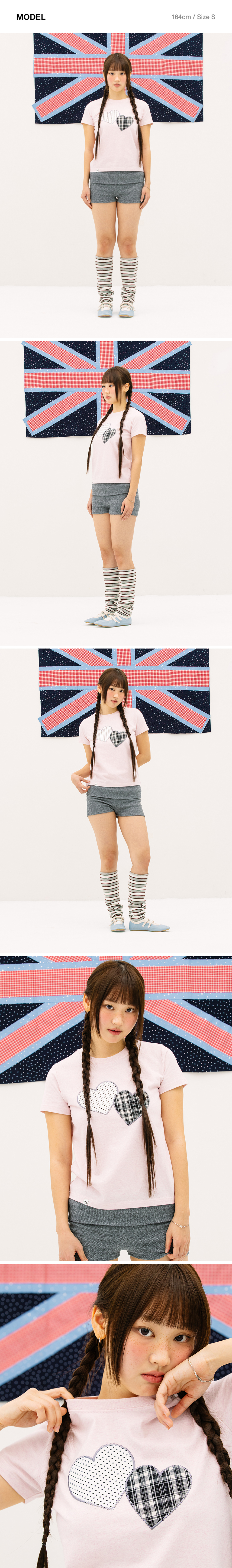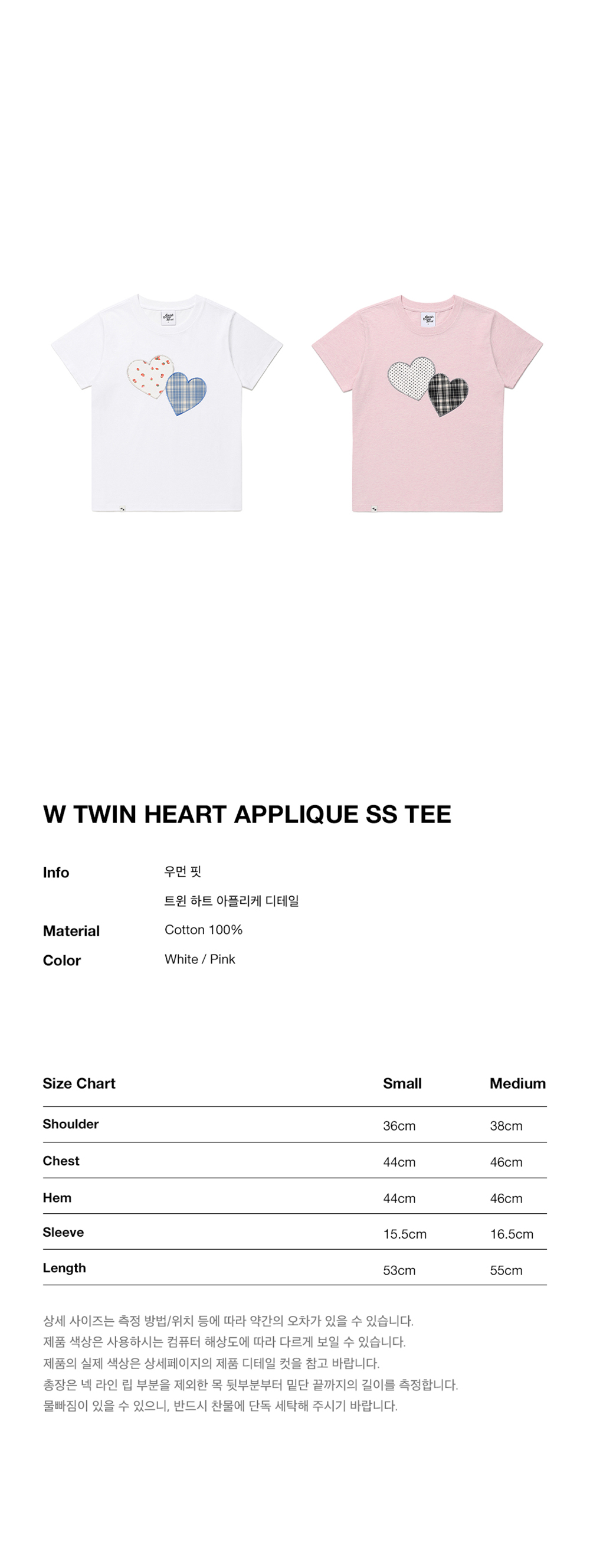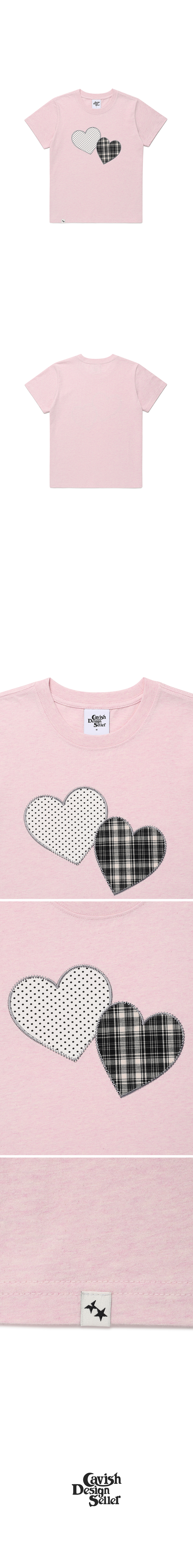 카비시 W 트윈 하트 아플리케 숏슬리브 티셔츠 핑크