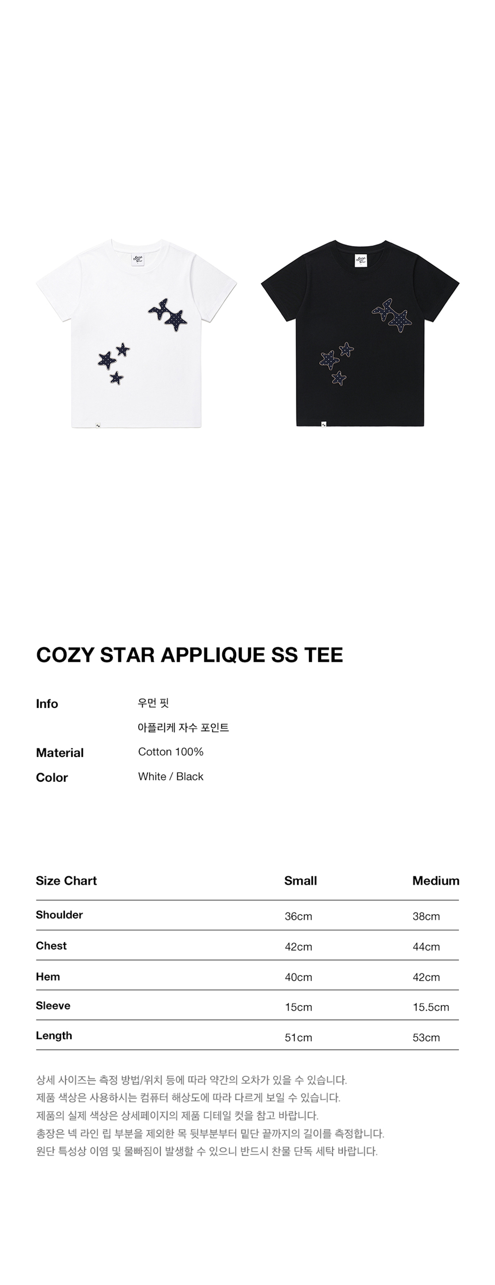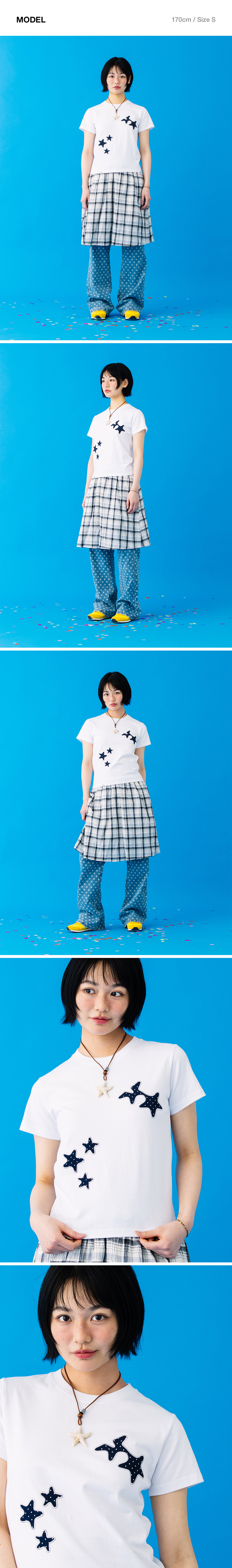 카비시 코지 스타 아플리케 숏슬리브 티셔츠 화이트