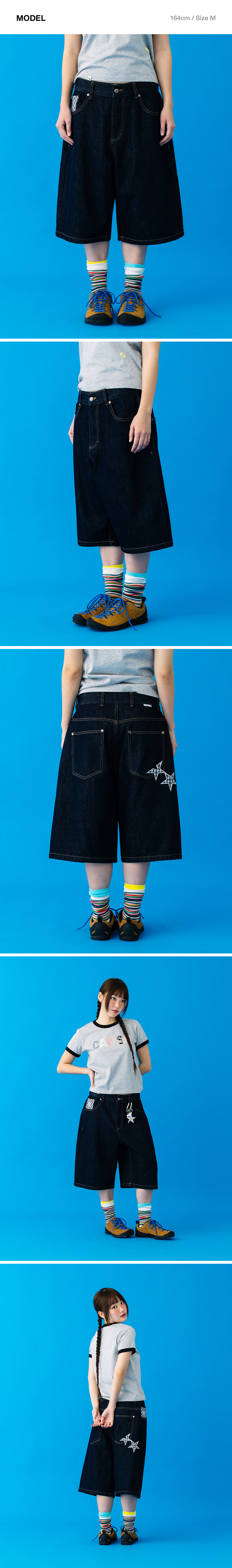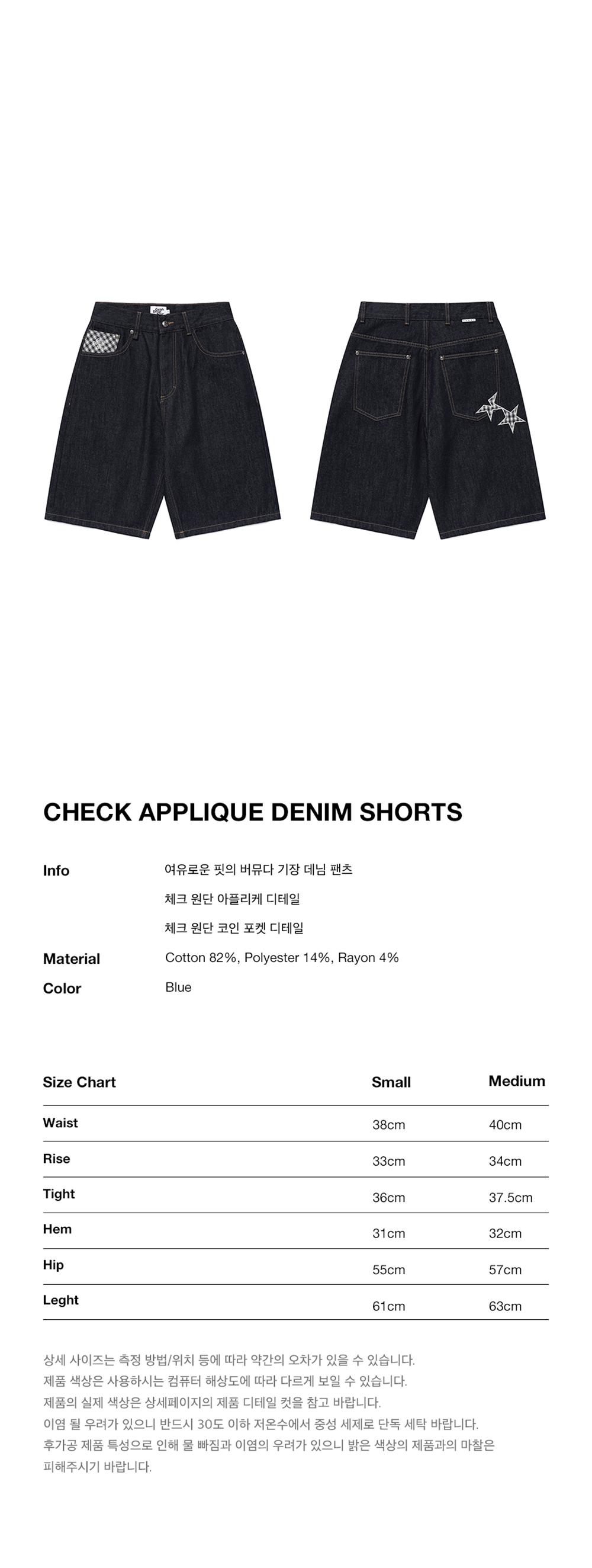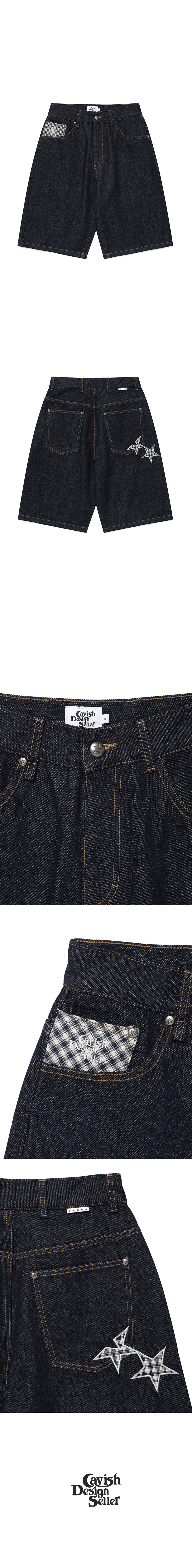 카비시 체크 아플리케 데님 쇼츠 블루