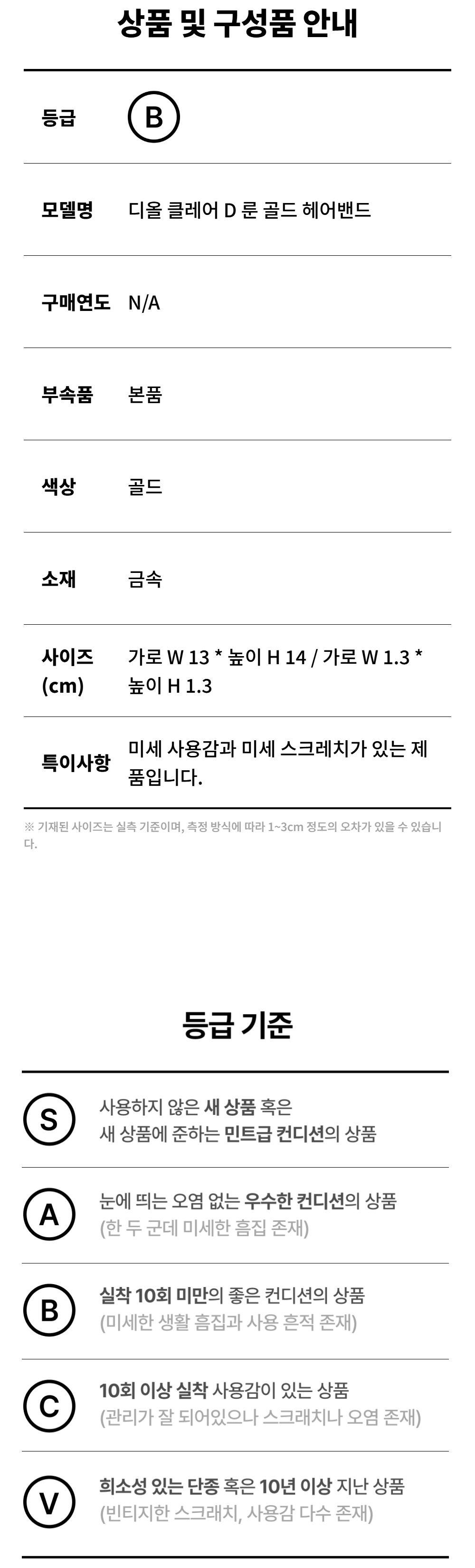 디올 클레어 D 룬 골드 헤어밴드 A-B50469
