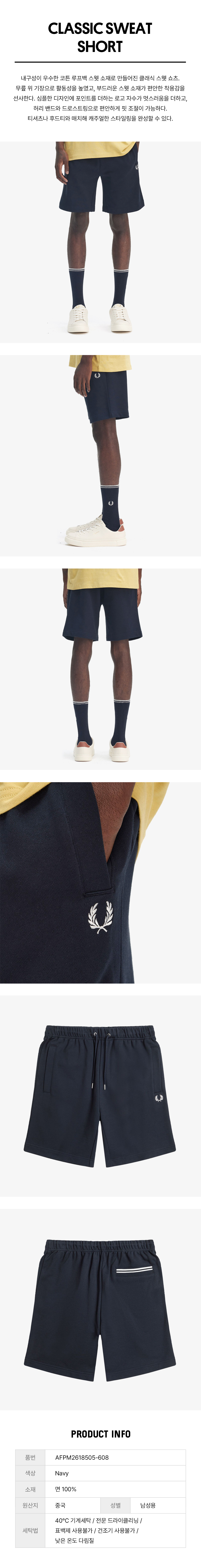 프레드페리 클래식 스웻 쇼츠 네이비