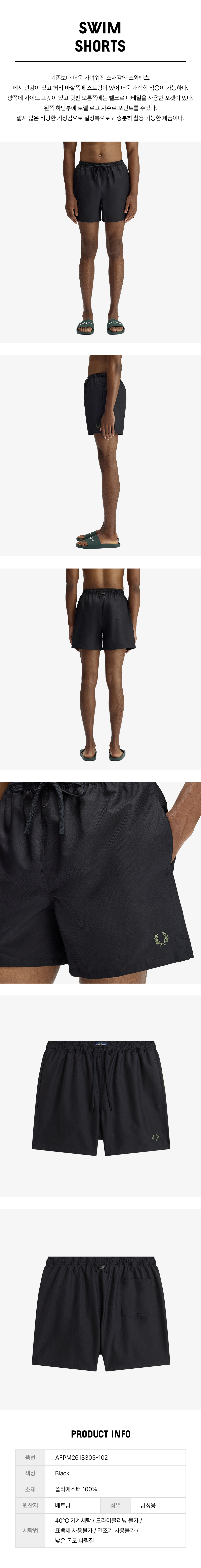 프레드페리 스윔쇼츠 블랙