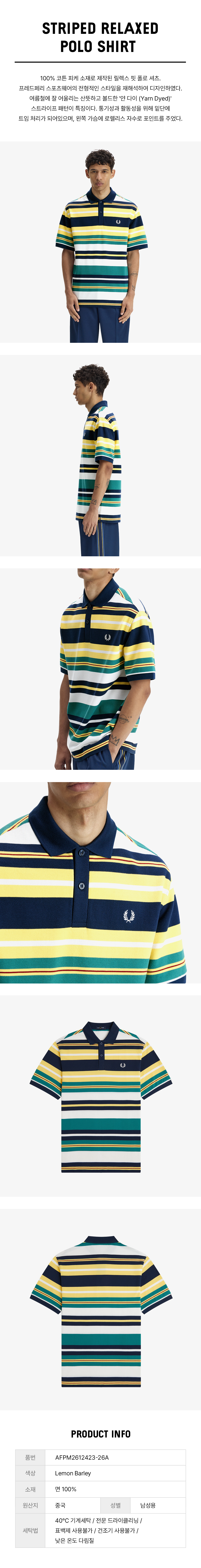 프레드페리 스트라이프 릴랙스드 폴로 셔츠 레몬 발리