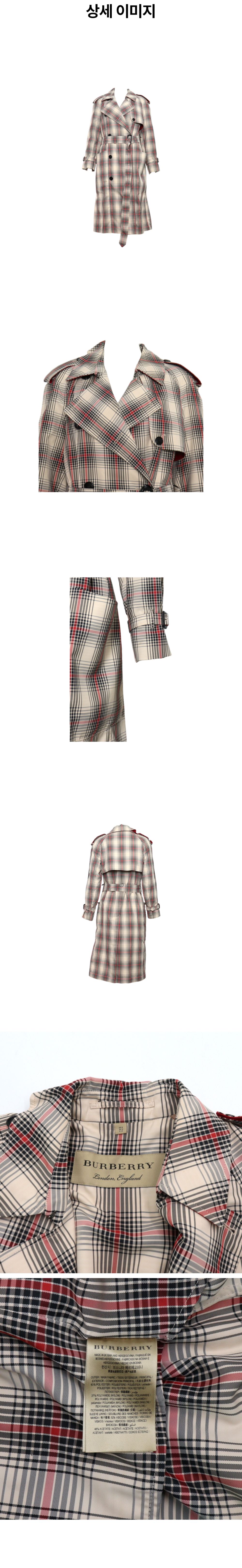 버버리 8006736 런던 베이지 체크 패턴 여성 벨트 트렌치코트 자켓aa61476