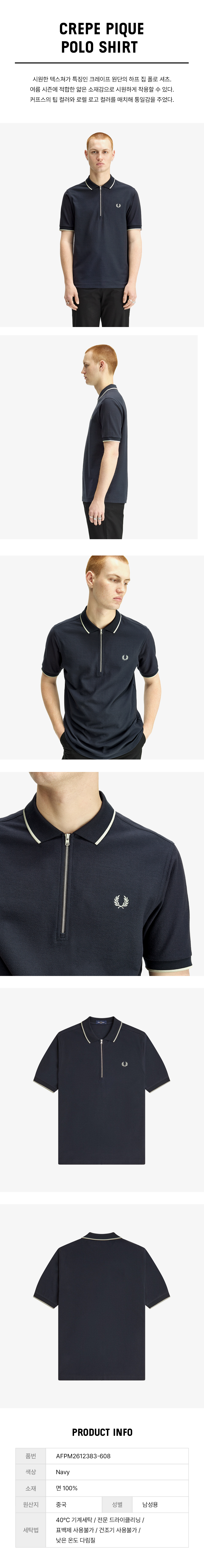 프레드페리 크레이프 피케 폴로 셔츠 네이비