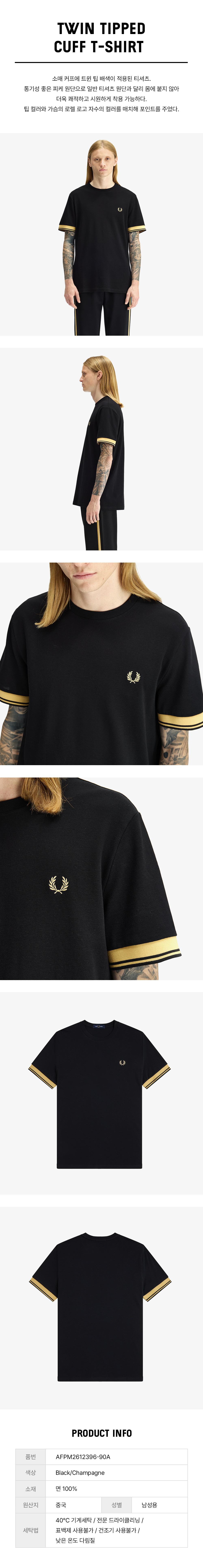 프레드페리 트윈 팁 커프 티셔츠 블랙 샴페인