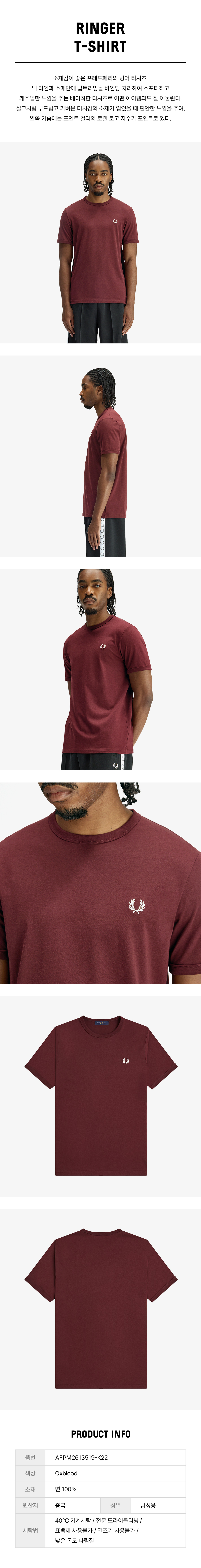 프레드페리 링어 티셔츠 옥스블러드