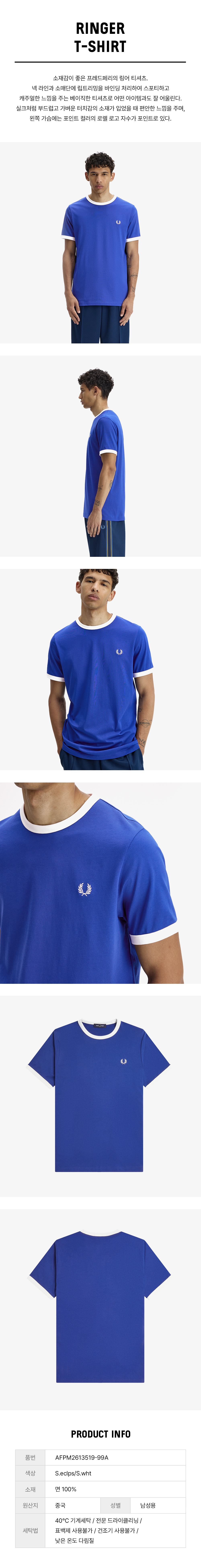 프레드페리 링어 티셔츠 소호이클립스 스노우화이트