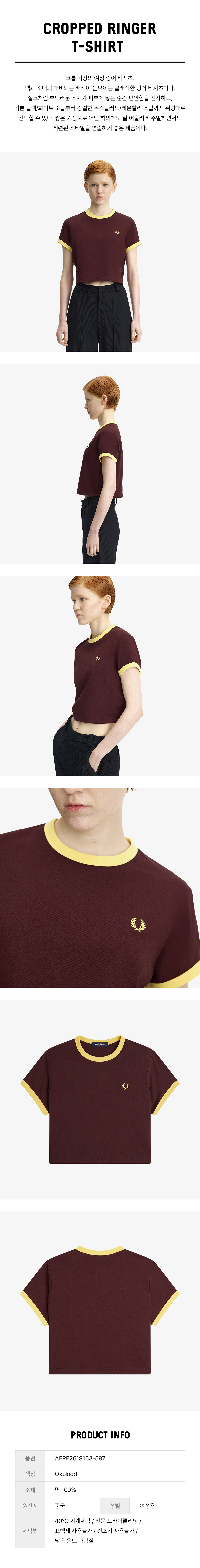 프레드페리 우먼즈 크롭 링어 티셔츠 옥스 블러드
