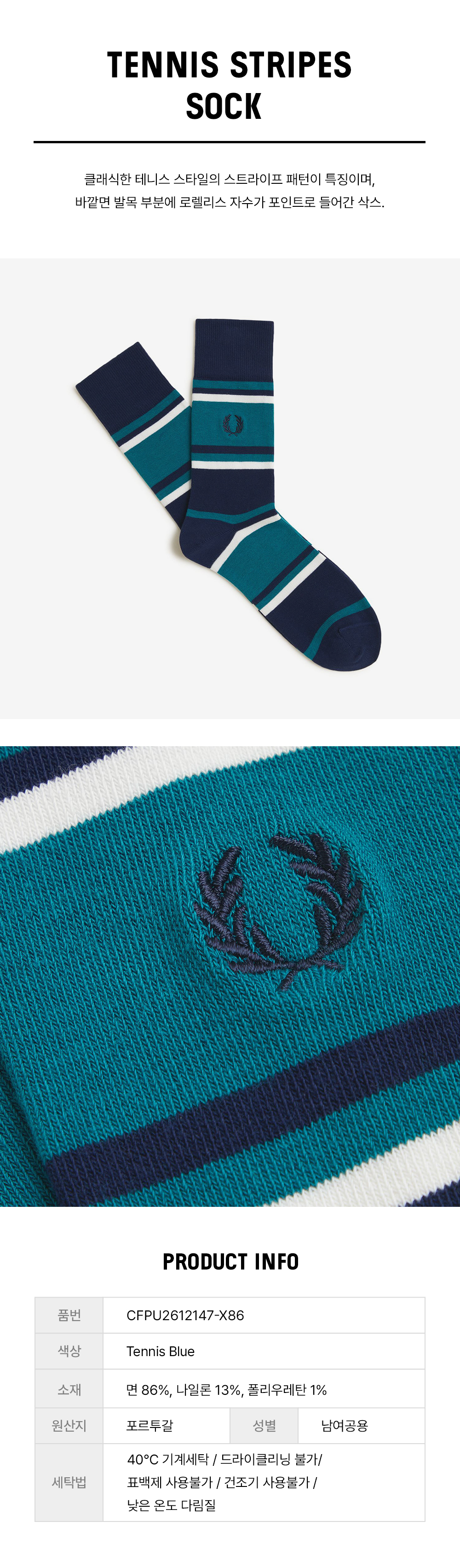프레드페리 테니스 스트라이프 삭스 테니스블루