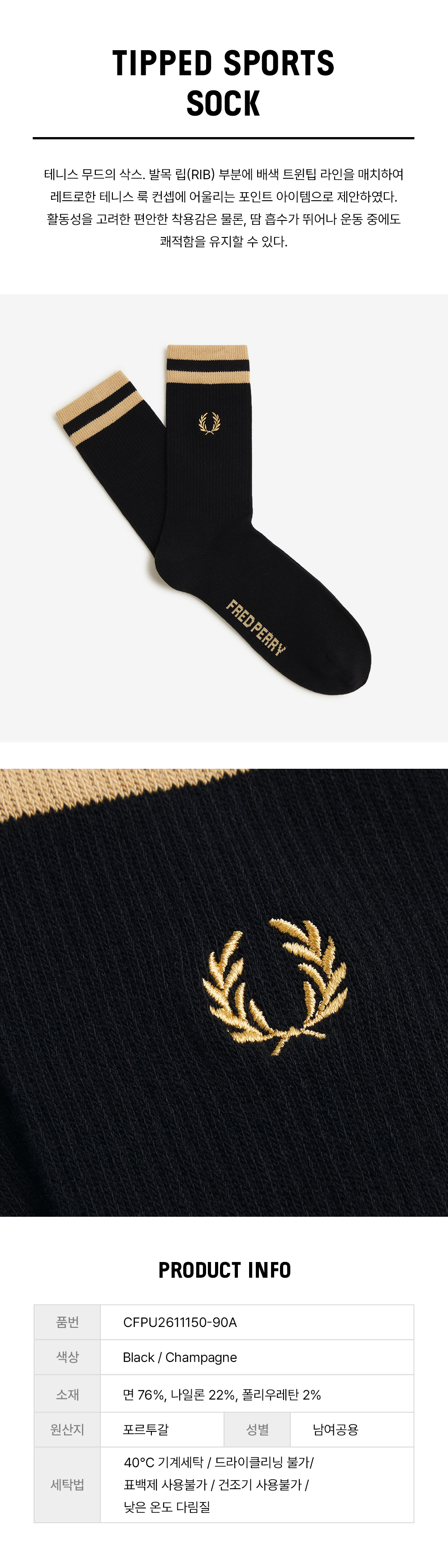 프레드페리 팁드 스포츠 삭스 블랙 샴페인