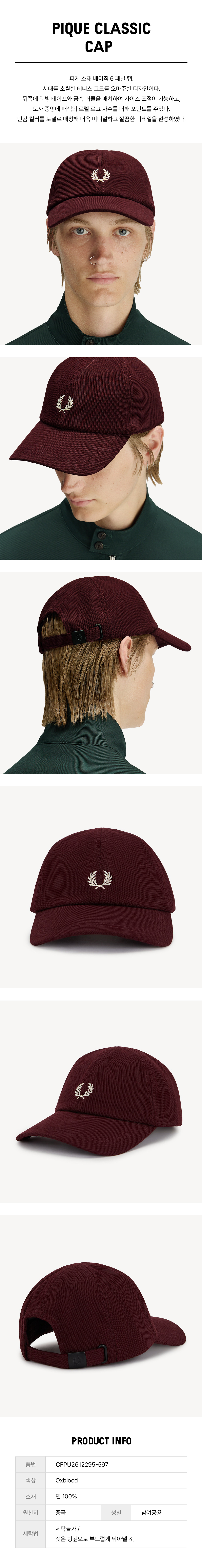 프레드페리 피케 클래식 캡 옥스블러드