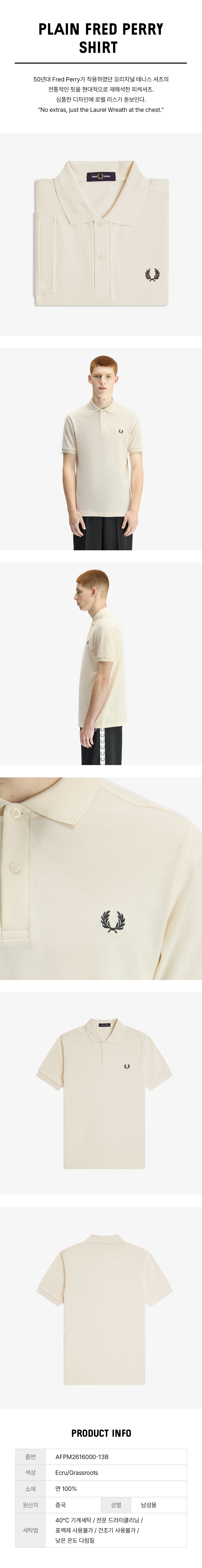 프레드페리 M6000 플레인 프레드페리 셔츠 에크루 그래스루츠
